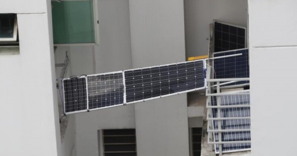 It is an alarming sight — a large solar panel hanging precariously outside an eighth-floor flat in Punggol.