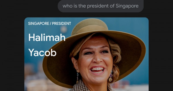 Redditor u/v1war presumably knows who the president of Singapore is (it’s Halimah Yacob), but proceeded to ask Google’s digital helper anyway. It’s an easy enough query that the Assistant had no issues with… until it pulled up her supposed image.