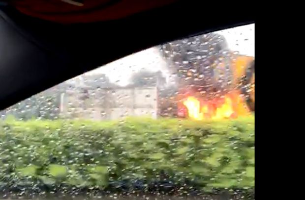 He then parked on the road shoulder and left the lorry to call for help. The lorry then caught fire and grew bigger despite the heavy rain.