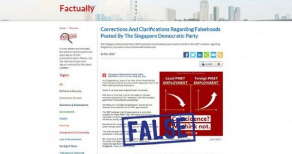 SINGAPORE – The Singapore Democratic Party (SDP) has filed an appeal in the High Court against correction notices issued by the Manpower Ministry – the first court challenge of the fake news law.