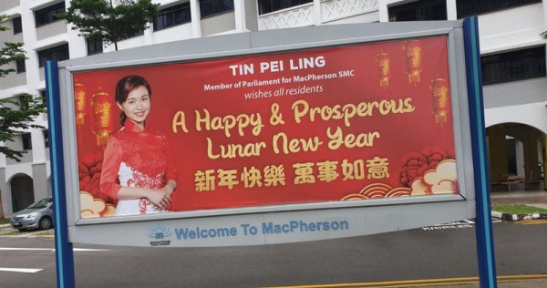 The picture features her head transplanted on the body of a woman in a rather salacious, skin-revealing cheongsam. In lieu of the original Lunar New Year greeting, the banner’s copy was edited in a parodic call for constituents to vote for the People’s Action Party “for Prosperity and Power”. The doctored image also featured a sarcastic “Enjoy Happy Savings with Government U-SAVE rebates” — something that’s very much a Singaporean boomer thing.