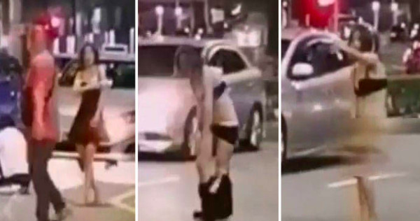 In the video, the woman is seen shouting and chasing after a man in a red T-shirt who is believed to be the cabby.